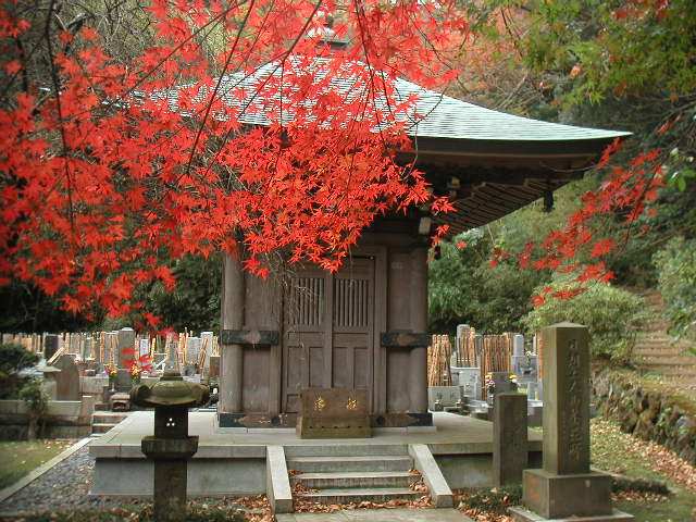 | 見所 | 春のカイドウ、秋のハギで有名な海蔵寺も綺麗なモミジで彩られています | ||
